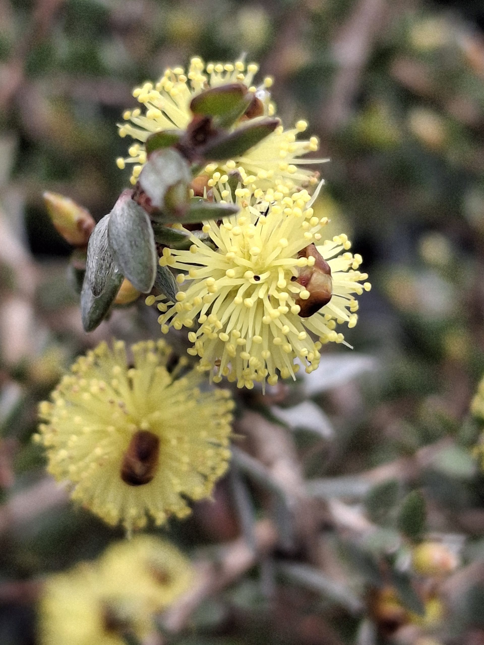 Conothamnus aureus is a small multi branched shrub growing 30–50 cm x 50cm–1m. The leaves are greyish green and lance-shaped to egg-shaped. The flowers are golden yellow and arranged on the ends of branchlets in spherical heads about 10 mm in diameter. Flowering occurs between August and November. Prefers full sun in well drained soils and is drought hardy and frost tolerant once established.