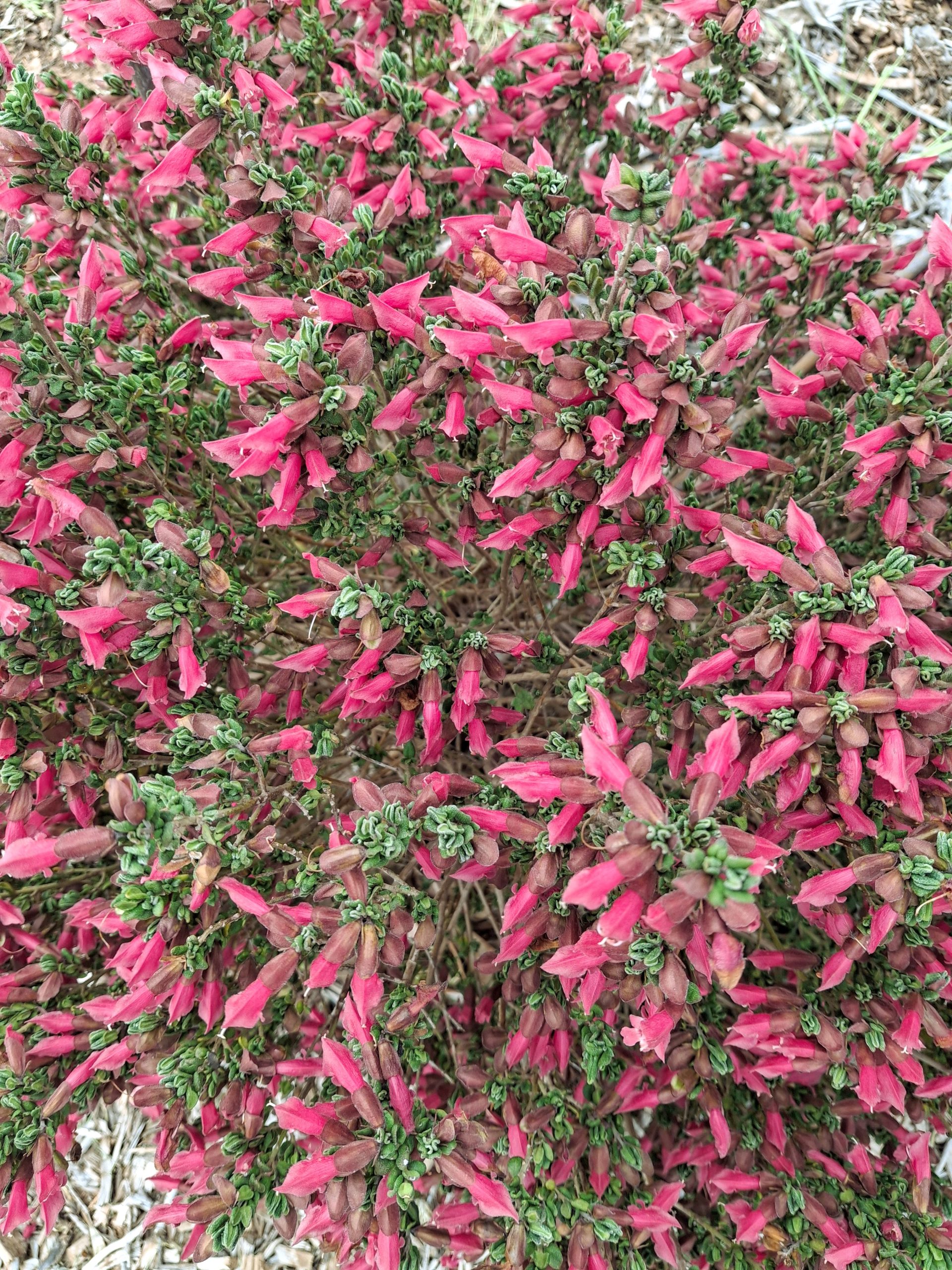 Small rounded shrub 50cm x 50cm. Small fragrant leaves. This form has pinkish red flowers spring and summer. It prefers well drained soils in full sun or part shade. Suitable for containers.