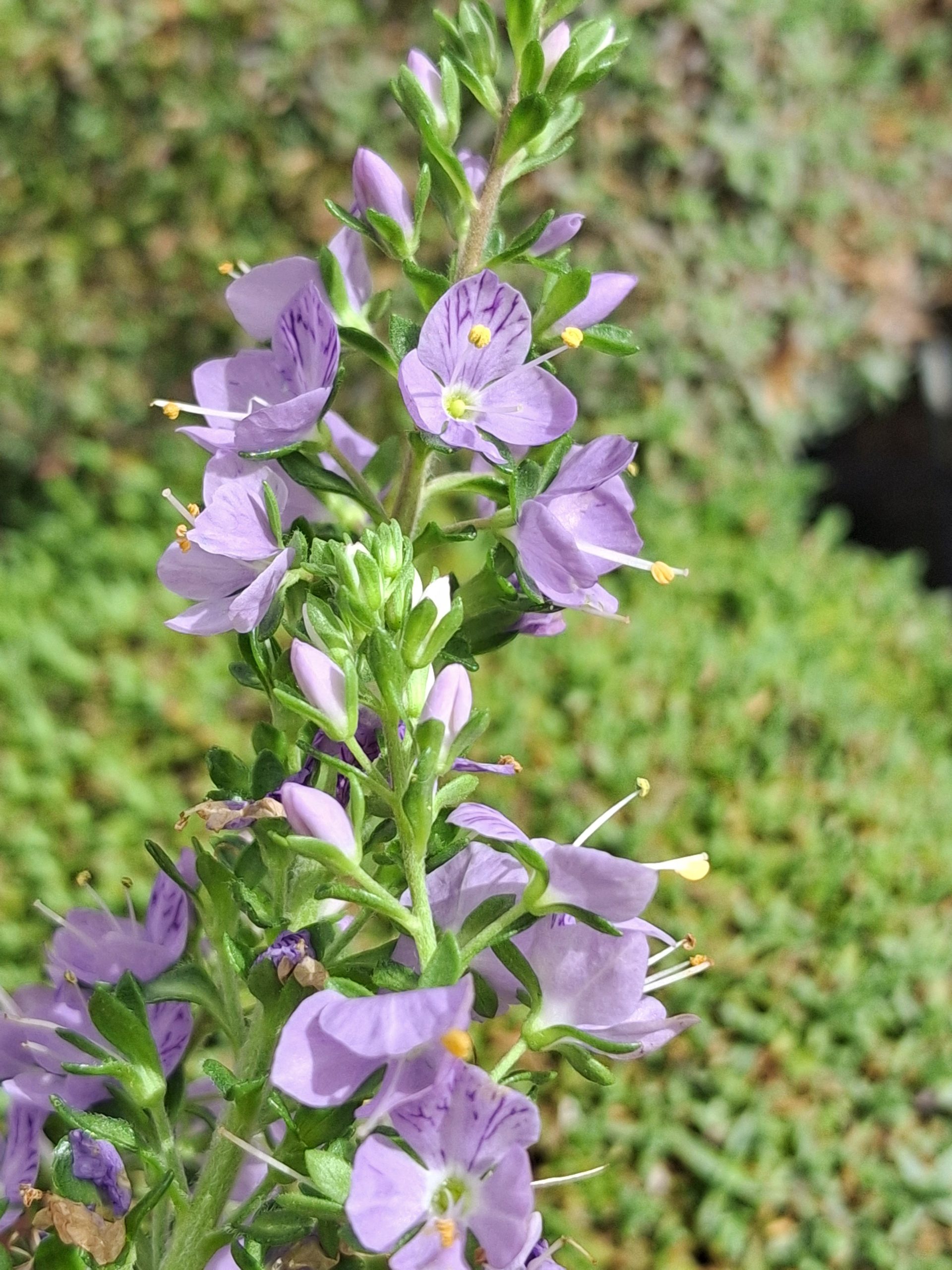 Dense mat of very deeply divided, almost fern-like leaves 5-10cm x 30cm. Short spikes of light blue flowers above the foliage in summer. Full sun or part shade in well drained soils, summer water recommended. Ideal for pots, containers, rockeries and front of borders.